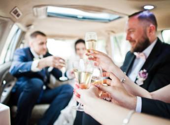Svadobná limuzína – romantická výzdoba a fľaša Huberta úplne zadarmo.